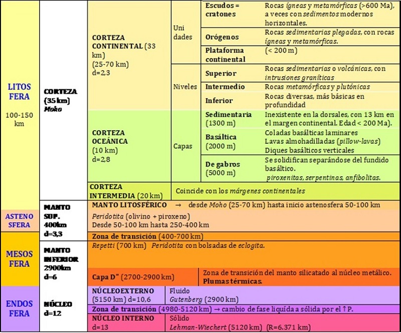 El modelo geodinámico de la estructura interna del planeta diferencia:
