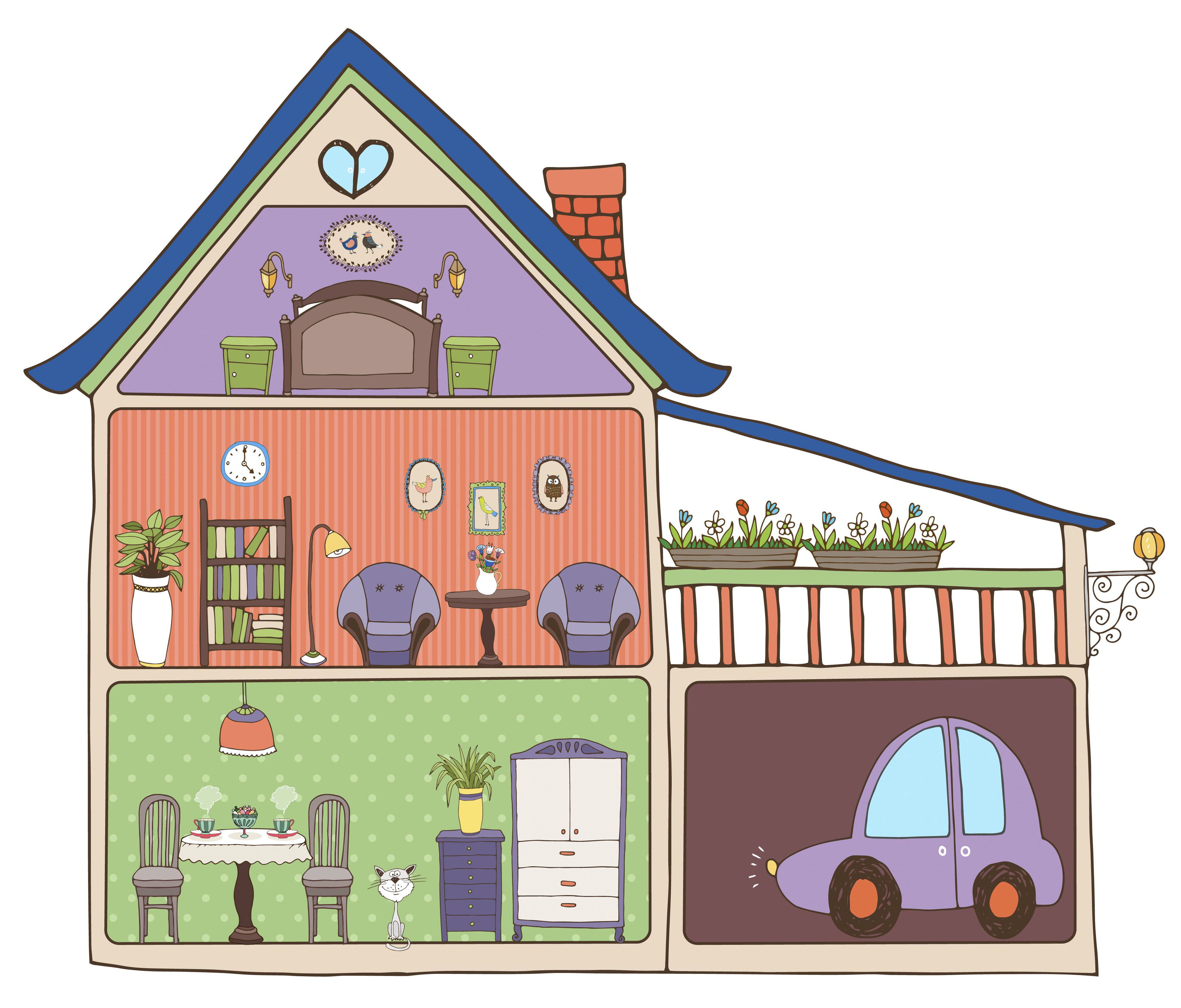 - bedroom, bathroom, living room and kitchen are rooms in a house/flat.