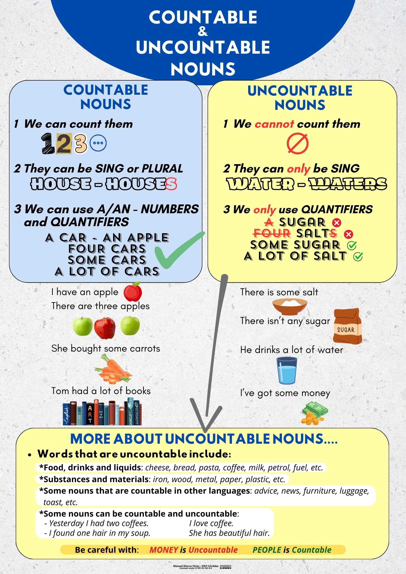 Puedes descargar la ficha en pdf pulsando aquí: "Countable/Uncountable Nouns".